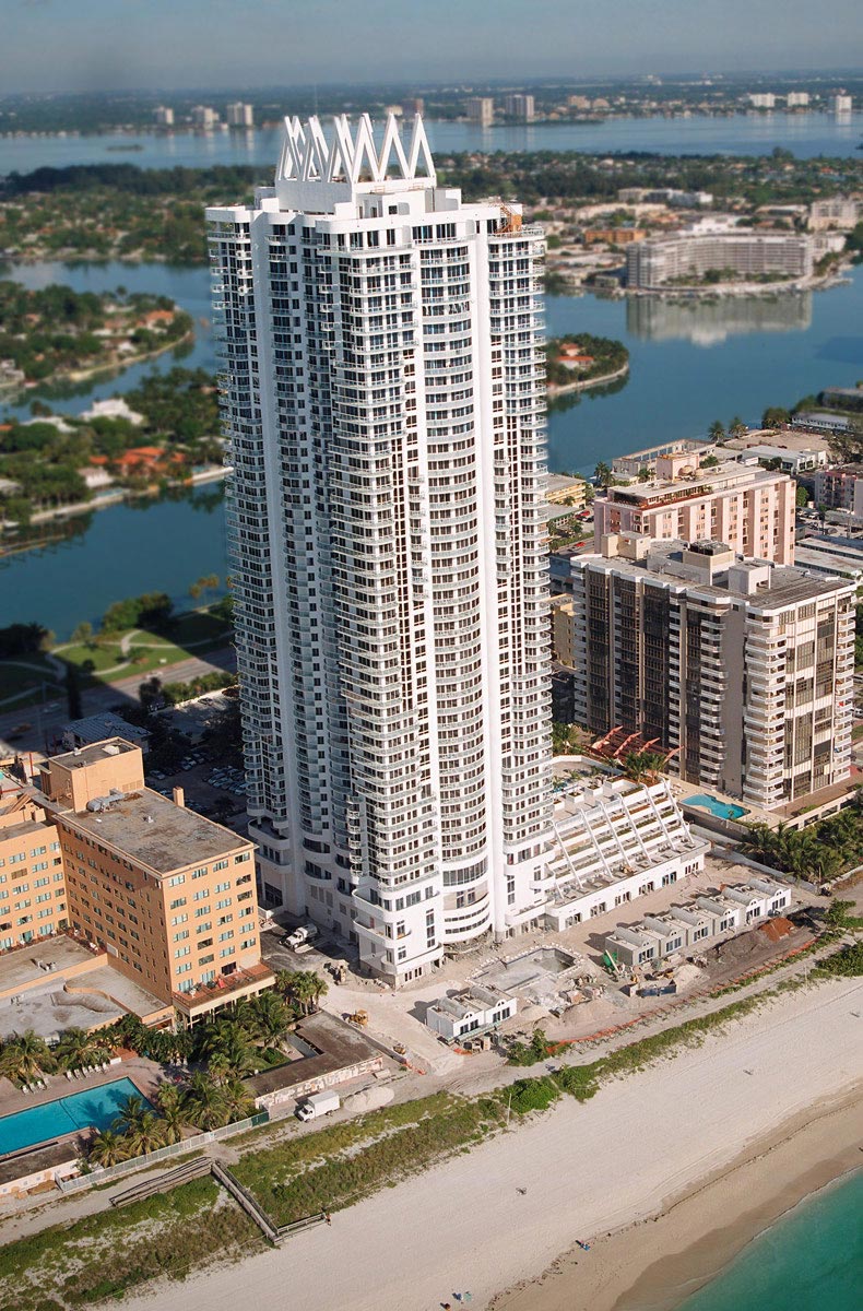 The structure of the towers is highly efficient “H” shaped reinforced concrete shearwalls, columns and slabs. The top of the building is cast in place concrete. It is supported on a foundation system based on augercast piles. The parking is post-tensioned flat plate with an extensive amenities deck on the seventh floor.